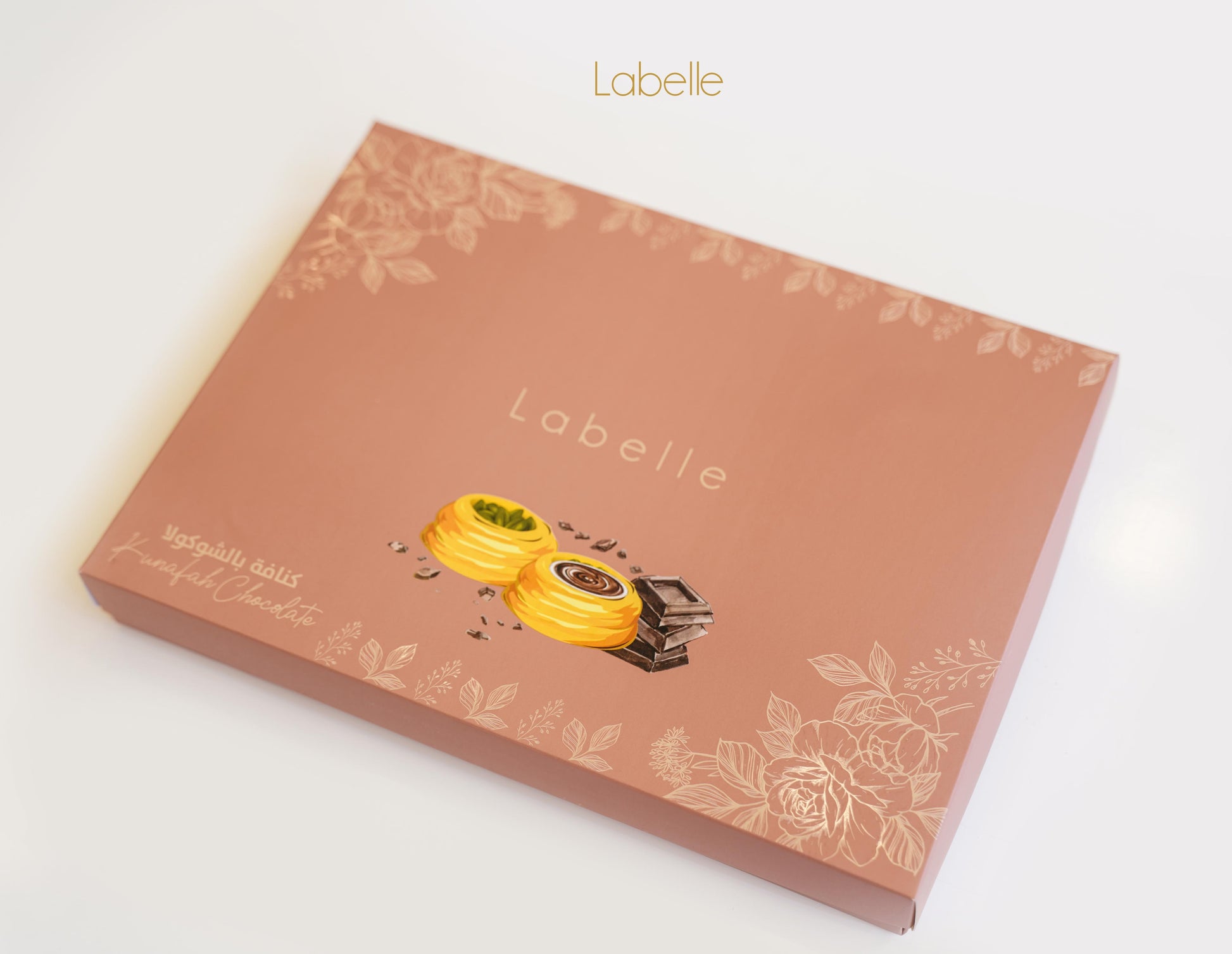 A delightful fusion of traditional Kunafa and premium Labelle chocolate creating a unique sweet treat with contrasting textures and rich flavors.